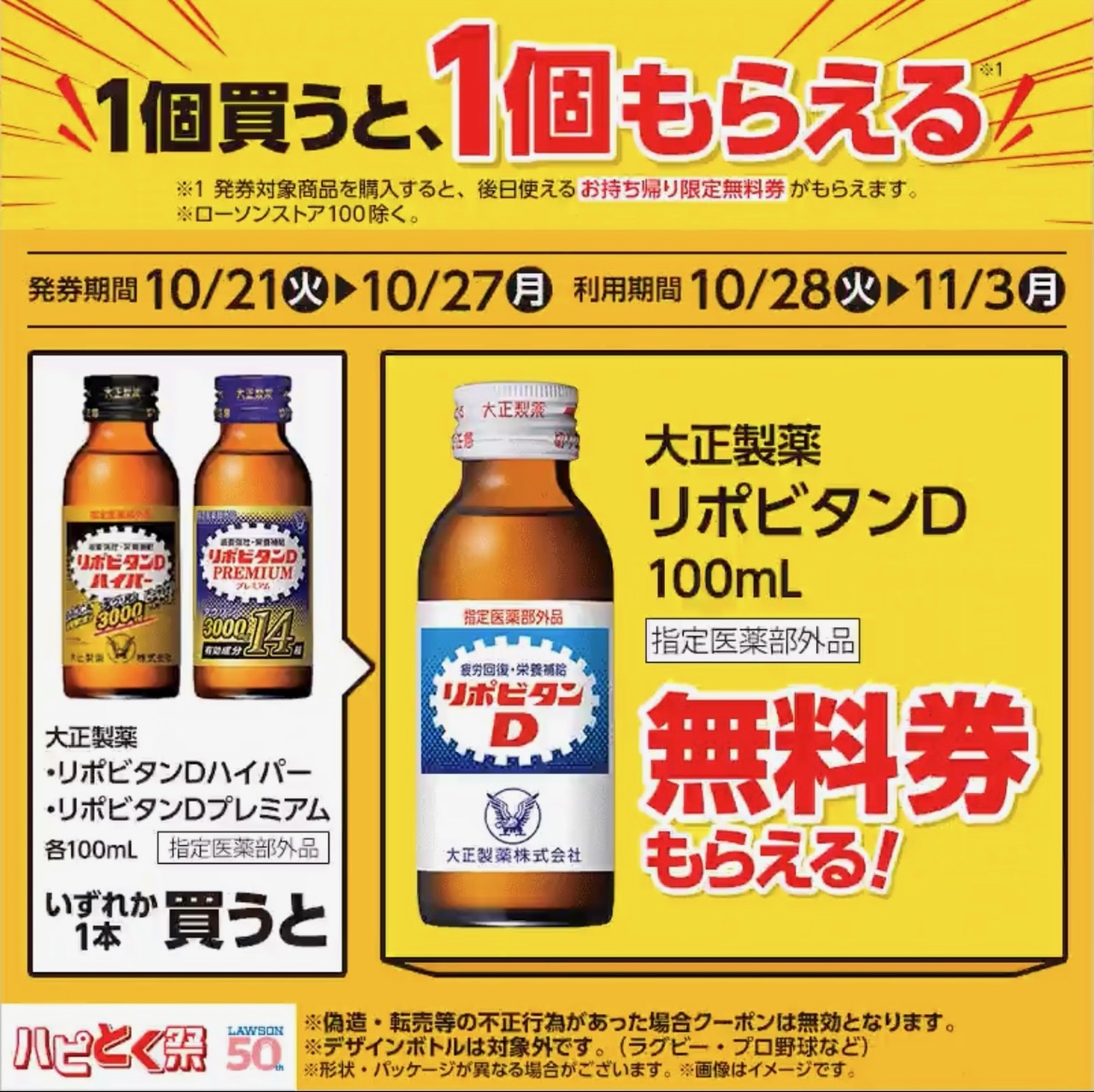 | ■対象商品 大正製薬 リポビタンD ハイパー 100ml 大正製薬 リポビタンD プレミアム100ml  | ■引換商品 大正製薬 リポビタンD 100ml  |