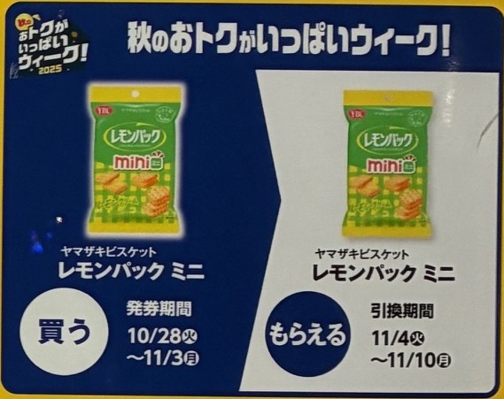 | ■対象商品 ヤマザキビスケット レモンパック ミニ | ■引換商品 ヤマザキビスケット レモンパック ミニ |