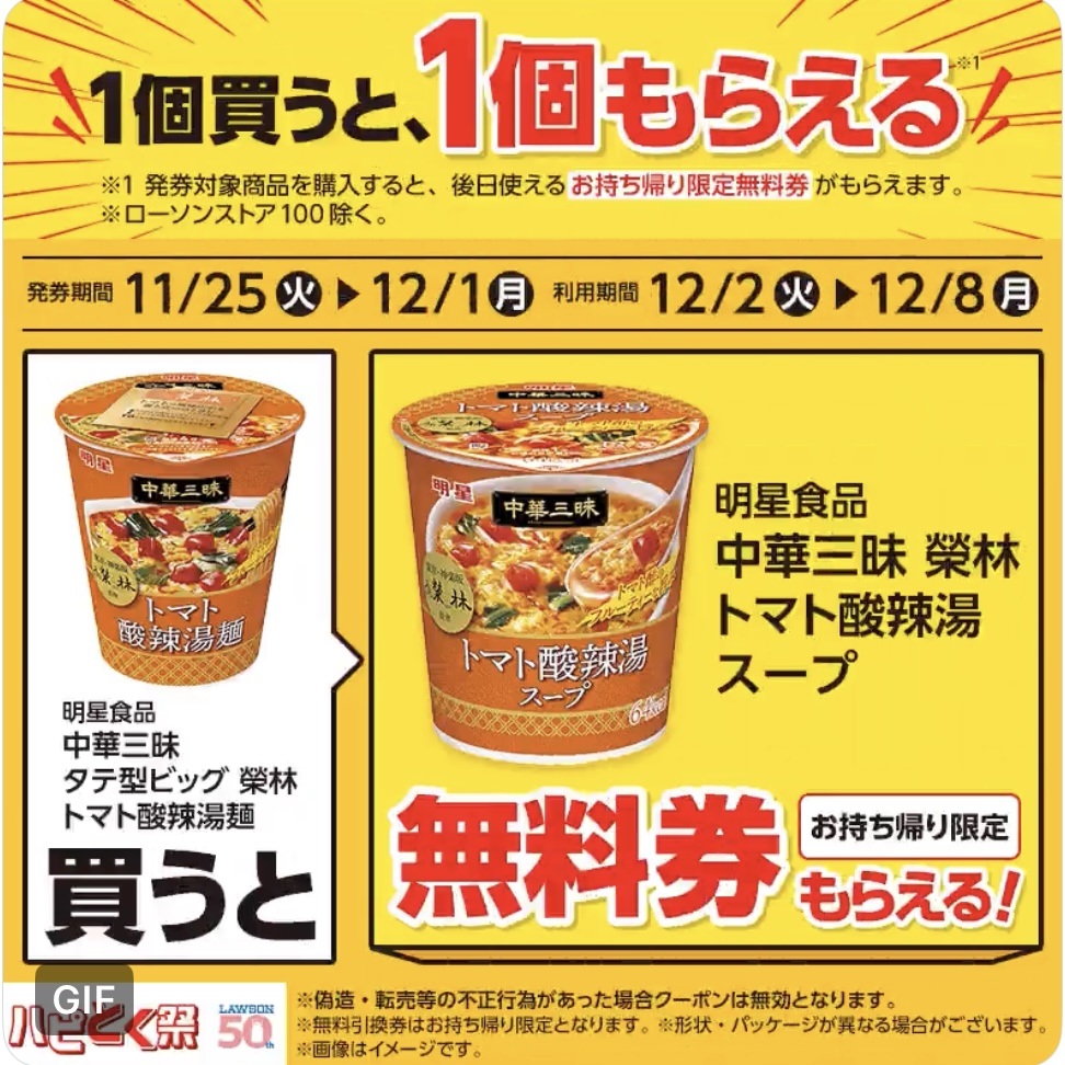| ■対象商品 明星食品 中華三昧 タテ型ビッグ 榮林 トマト酸辣湯麺 | ■引換商品 明星食品 中華三昧 榮林 トマト酸辣湯スープ |