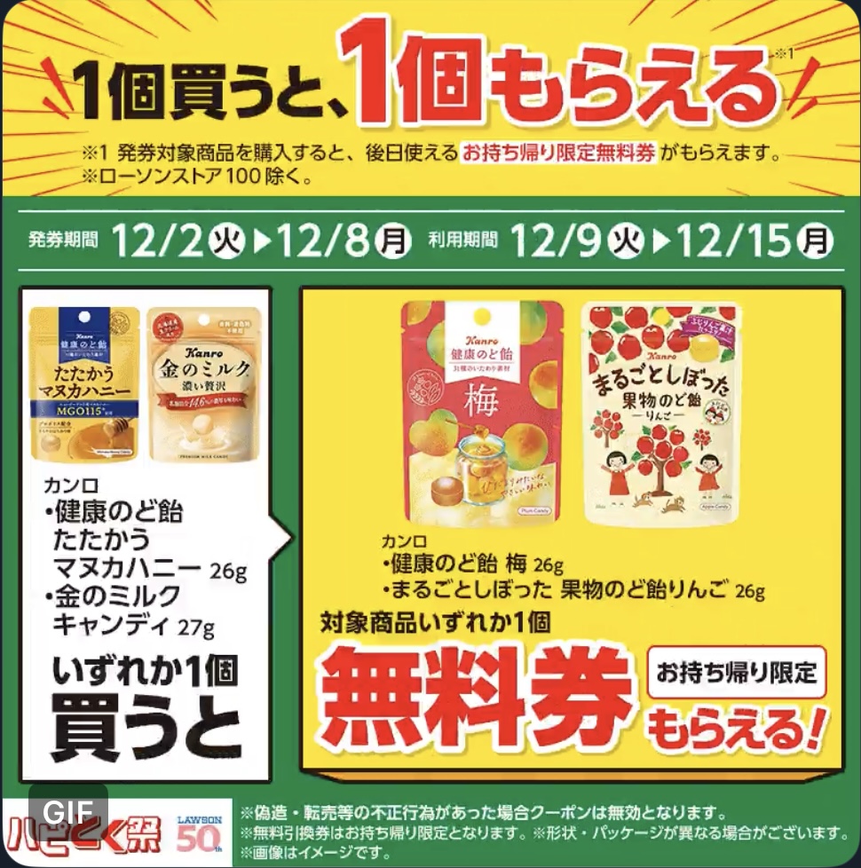 | ■対象商品 カンロ 金のミルクキャンディ 27g カンロ 健康のど飴 たたかうマヌカハニー 26g | ■引換商品 カンロ 健康のど飴 梅 26g カンロ まるごとしぼった果物のど飴 りんご 26g |