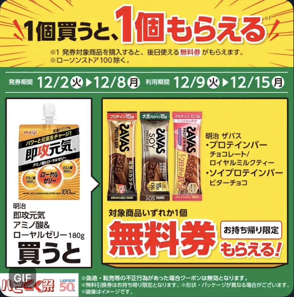 | ■対象商品 明治 即攻元気 アミノ酸&ローヤルゼリー 180g | ■引換商品 明治 ザバス プロテインバー チョコレート 明治 ザバス ソイプロテインバー ビターチョコ 明治 ザバス プロテインバー ミルクティー |
