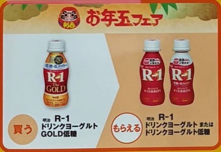 | ■対象商品 明治 R-1 ドリンクヨーグルト GOLD低糖 | ■引換商品 明治 R-1 ドリンクヨーグルト 明治 R-1 ドリンクヨーグルト 低糖 |