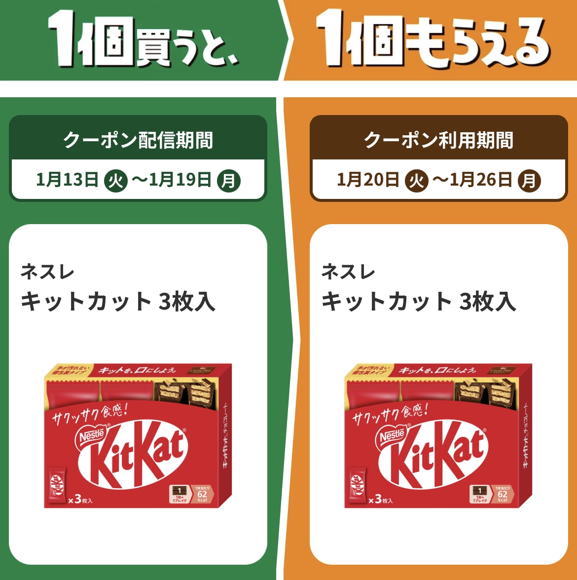 | ■対象商品 ネスレ キットカット 3枚入 | ■引換商品 ネスレ キットカット 3枚入 |