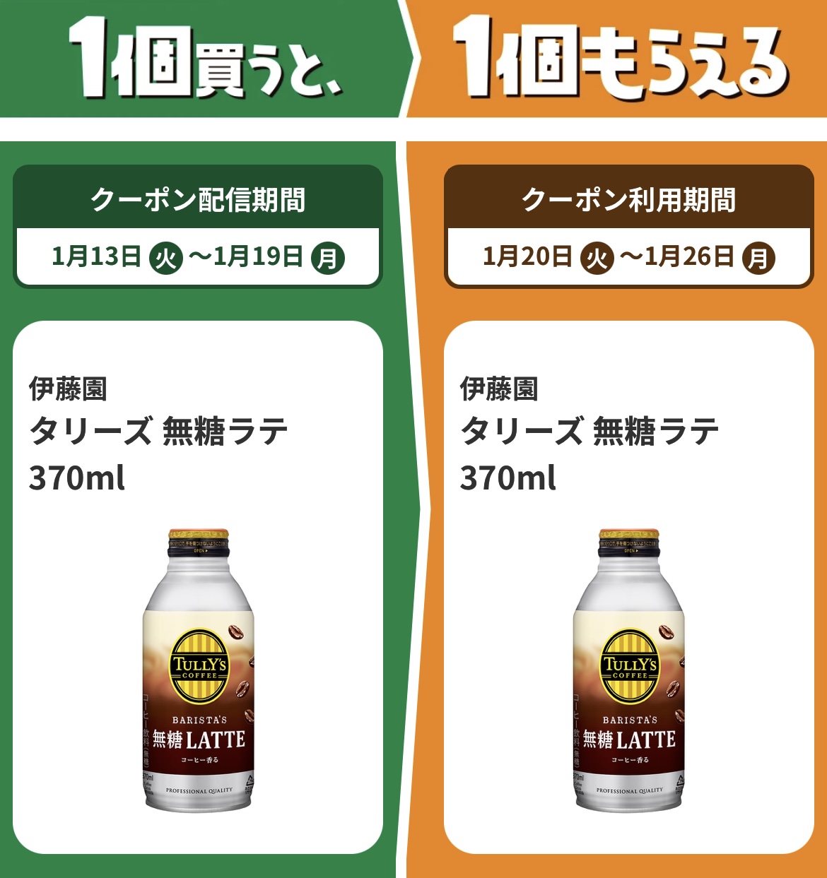 | ■対象商品 伊藤園 タリーズ 無糖ラテ 370ml | ■引換商品 伊藤園 タリーズ 無糖ラテ 370ml |