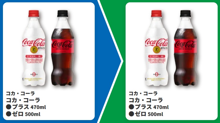 コカ・コーラ プラス 470ml、ゼロ 500ml