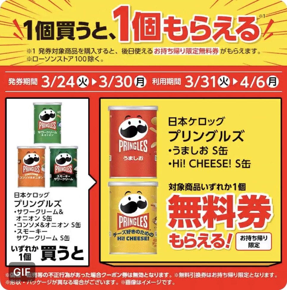 | ■対象商品 日本ケロッグ プリングルズ サワークリーム&オニオン S缶 日本ケロッグ プリングルズ コンソメ&オニオン S缶 日本ケロッグ プリングルズ スモーキーサワークリーム S缶 | ■引換商品 日本ケロッグ プリングルズ うましお S缶 日本ケロッグ プリングルズ Hi! CHEESE! S缶 |