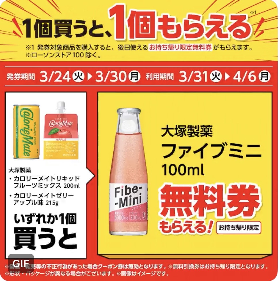 | ■対象商品 大塚製薬 カロリーメイトゼリー アップル味 215g 大塚製薬 カロリーメイトリキッド フルーツミックス 200ml | ■引換商品 大塚製薬 ファイブミニ 100ml |