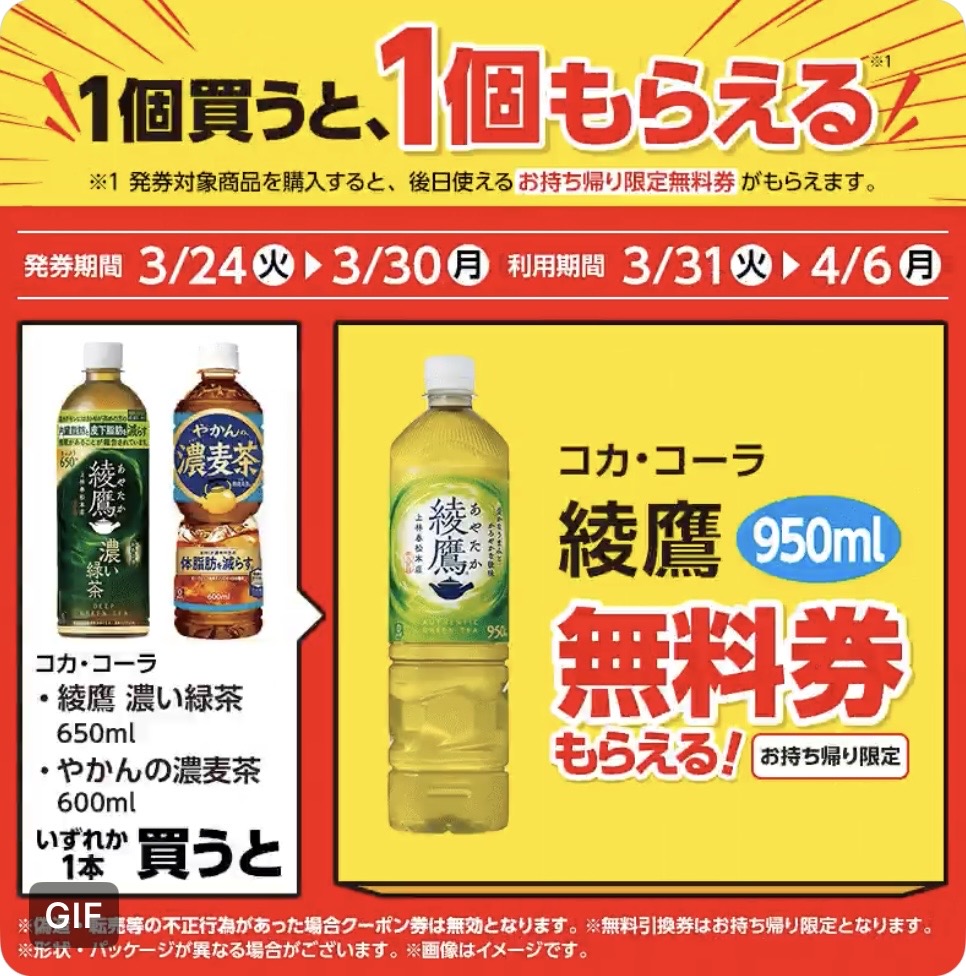 | ■対象商品 コカ・コーラ 綾鷹 濃い緑茶 650ml コカ・コーラ やかんの濃麦茶 600ml | ■引換商品 コカ・コーラ 綾鷹 950ml |