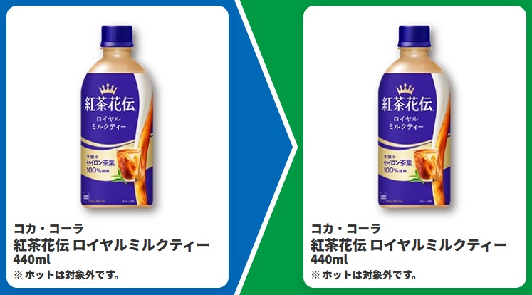 | ■対象商品 コカ・コーラ 紅茶花伝 ロイヤルミルクティー 440ml | ■引換商品 コカ・コーラ 紅茶花伝 ロイヤルミルクティー 440ml |