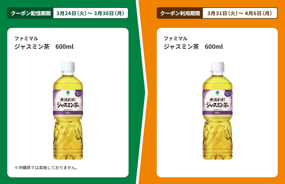 | ■対象商品 ファミマル ジャスミン茶 600ml | ■引換商品 ファミマル ジャスミン茶 600ml |