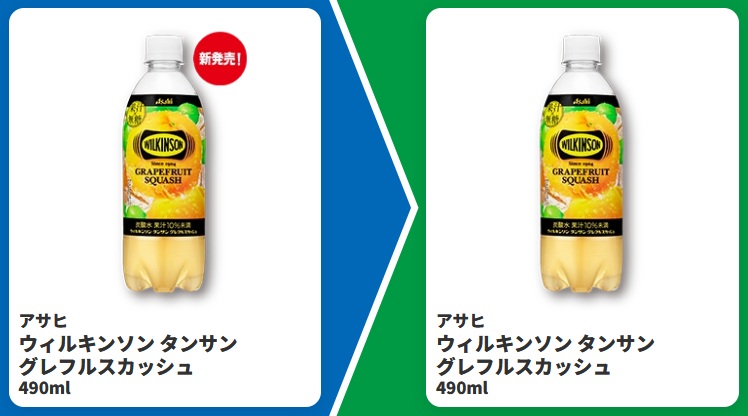 | ■対象商品 アサヒ ウィルキンソン タンサン グレフルスカッシュ 490ml | ■引換商品 アサヒ ウィルキンソン タンサン グレフルスカッシュ 490ml |