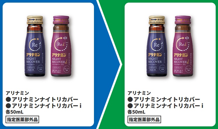 | ■対象商品 アリナミン アリナミンナイトリカバー 50ml アリナミン アリナミンナイトリカバー i 50ml | ■引換商品 アリナミン アリナミンナイトリカバー 50ml アリナミン アリナミンナイトリカバー i 50ml |